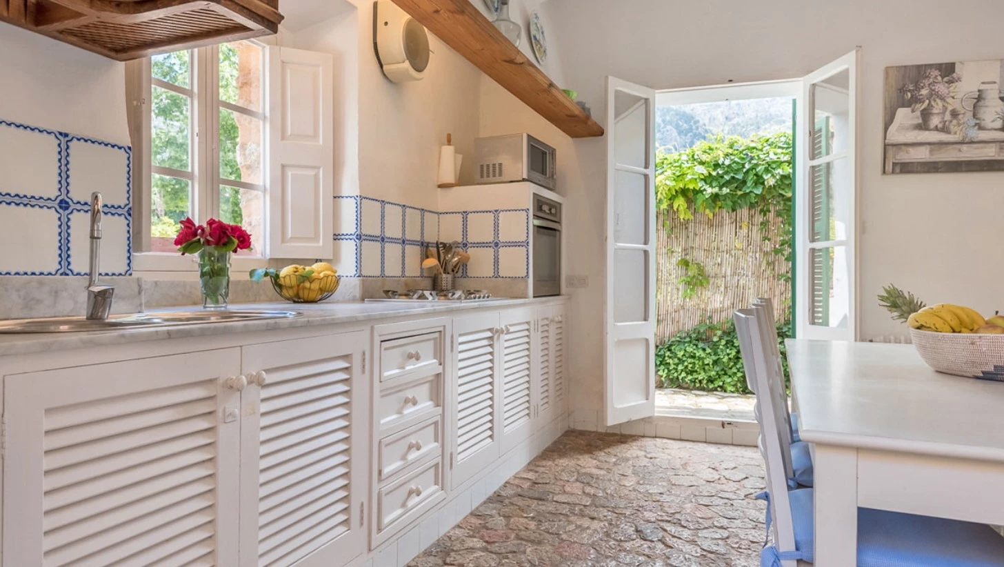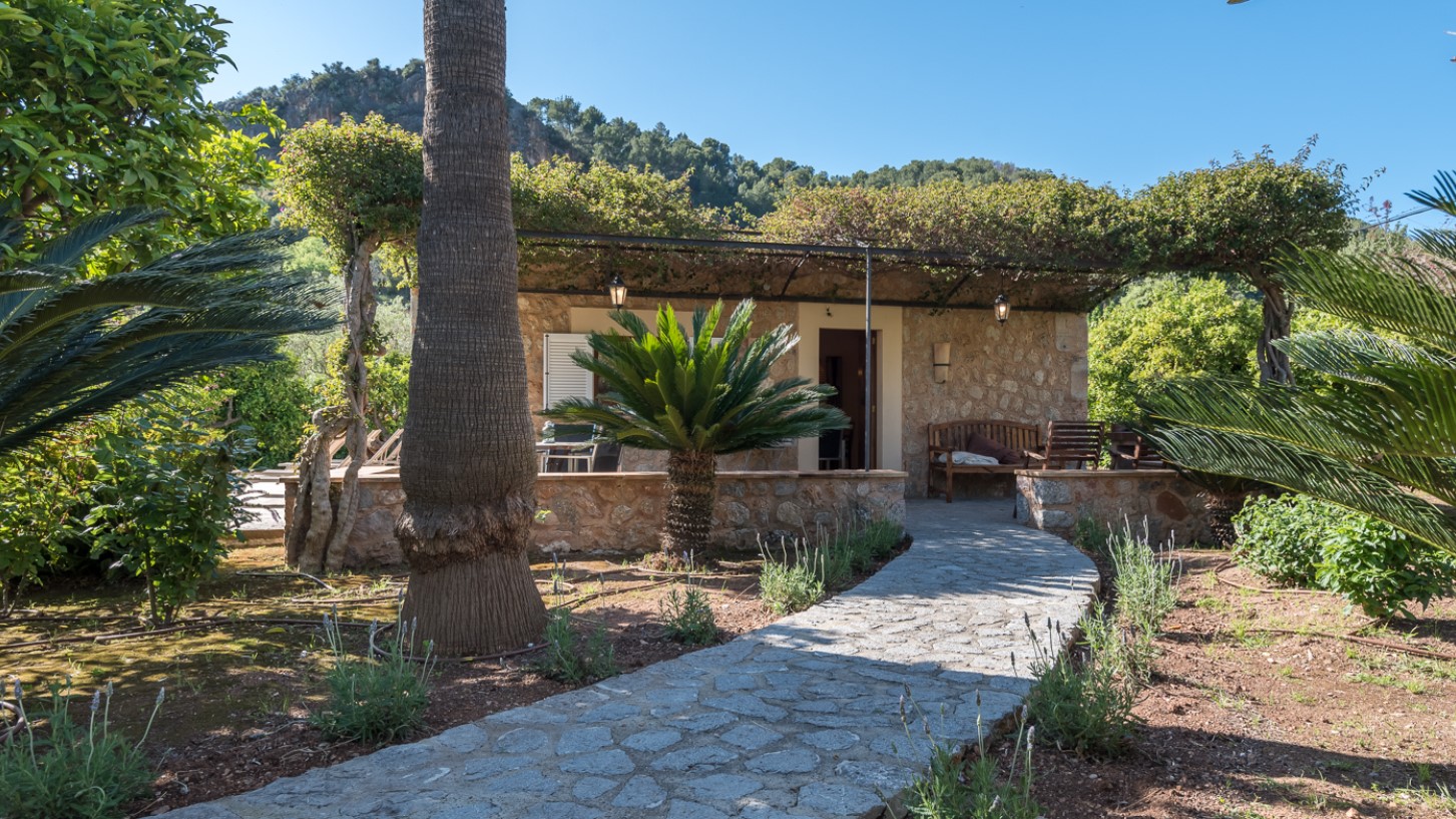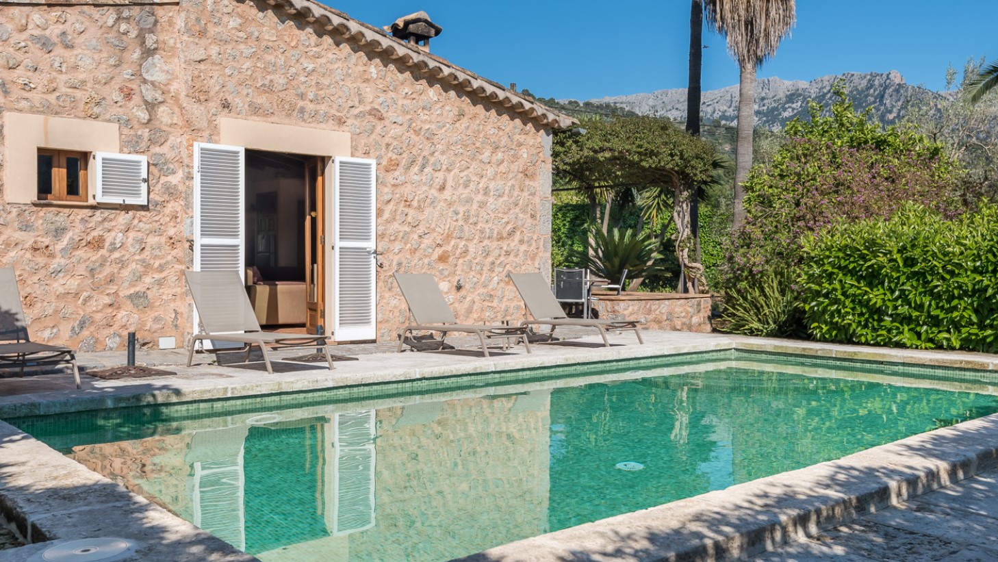 Let yourself be carried away by the romanticism of the Tramuntana at Can Busquera. Can Busquera offers a repite from the world. This four bedroom house boasts lush gardens and a large terrace. There is a selection of outdoor places to relax with sun loungers and parasols around the sunny and shaded terrace as well as by the stunning pool. Numerous thoughtful touches make it a wonderful vacation rental for the family.